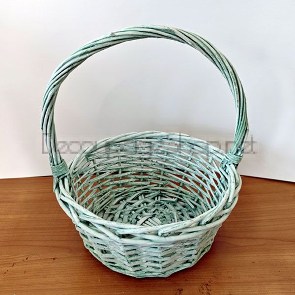 Кръгла плетена кошница бледозелена - средна кошница 28,0 х 31,0 х 11,0 см