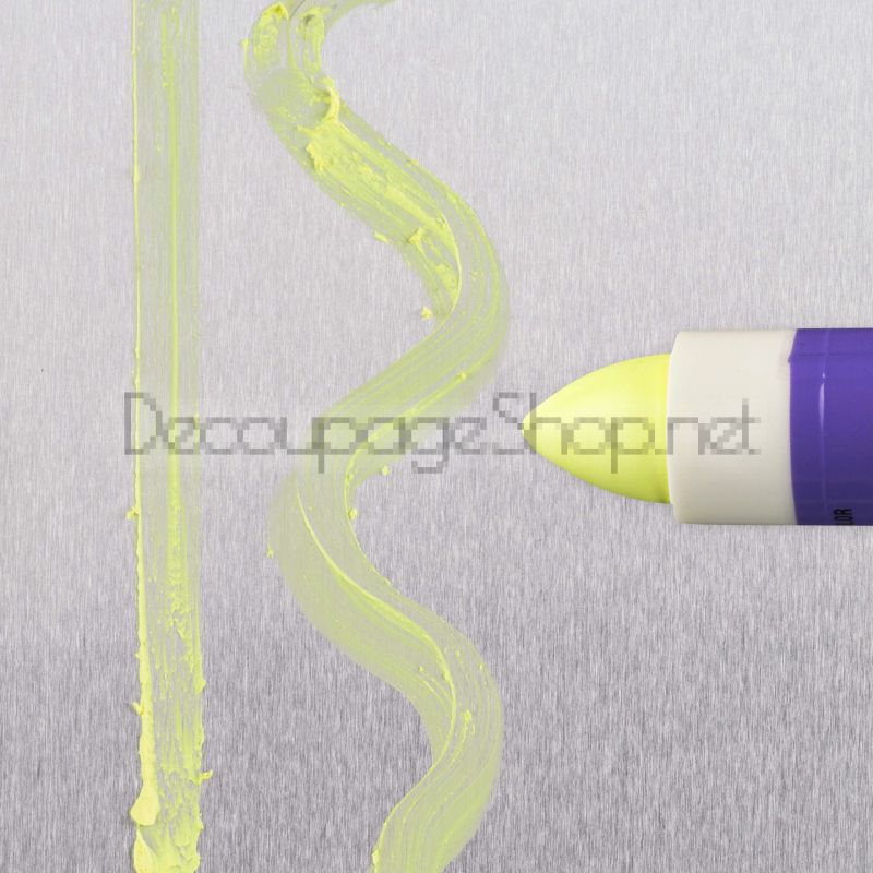 Маркерът представлява стик твърда маслена боя в пластмасов корпус със завъртане