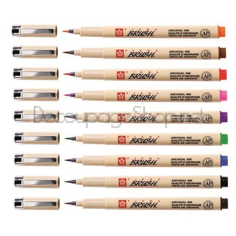 Кафяв флумастер с връх тип мека четка Pigma Brush популярен за илюстрация и комикси ( манга ); калиграфия и краснопис hand lettering; рисуване.