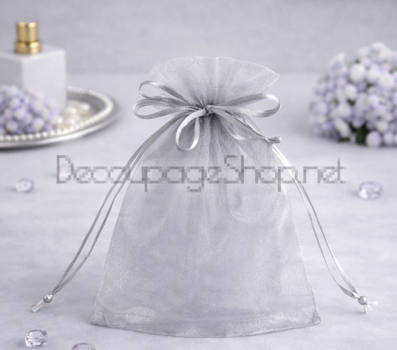 ТОРБИЧКИ ОТ ОРГАНЗА 7 cm/ 9 cm, СРЕБРО (7см/6,5см+2,5см)